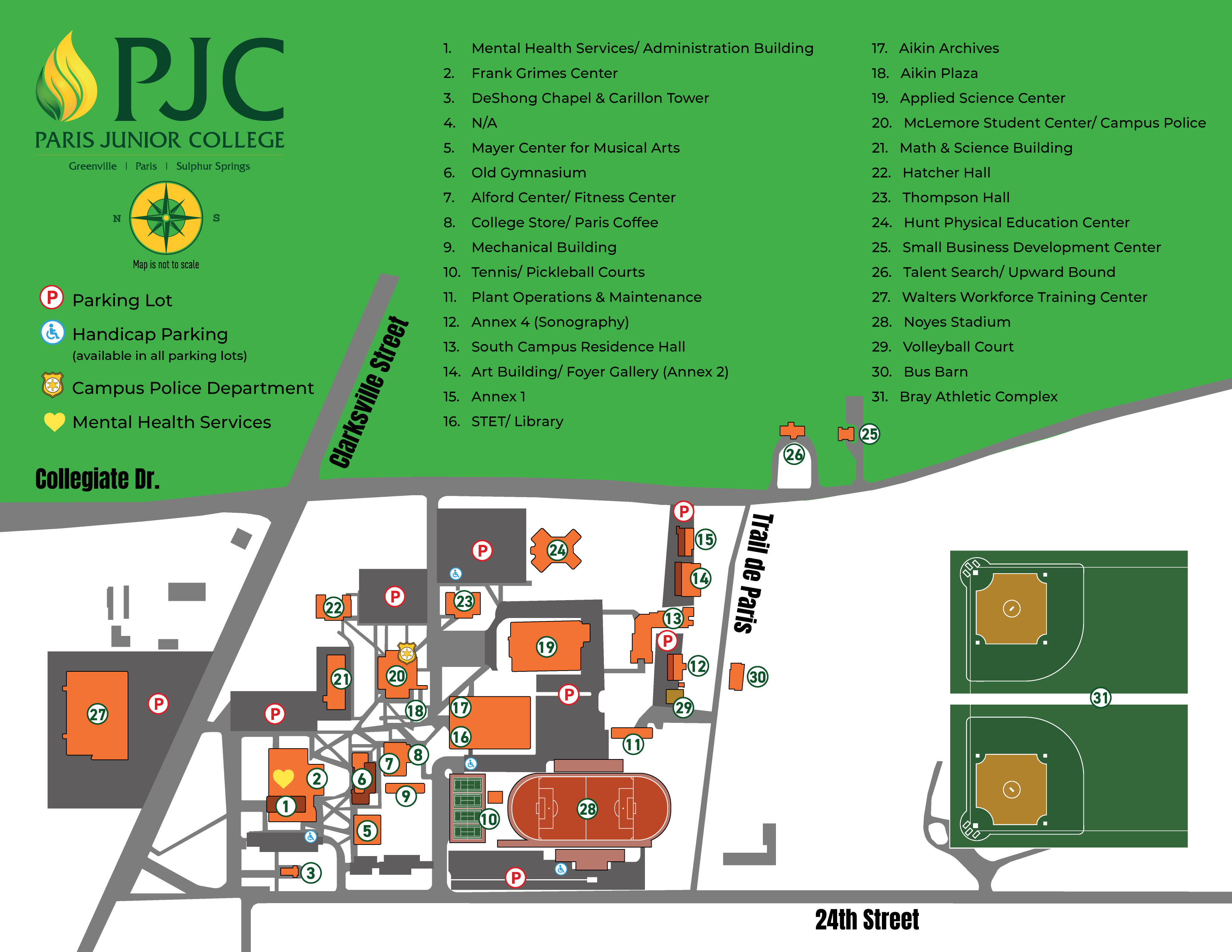 Paris Junior College's campus in Paris, Texas, sits on 54 tree-shaded acres in the southwest section of the city.